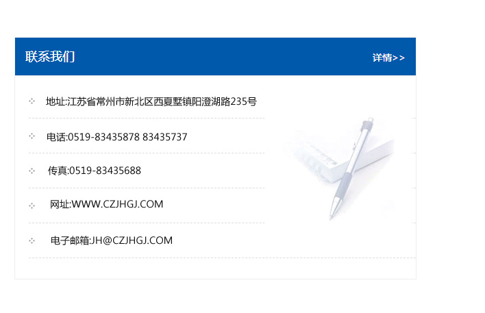 傳真:0519-83435688    郵編:213135    網址:WWW.czjhgj_com.ksxcszgc.com    電子郵箱:JH@czjhgj_com.ksxcszgc.com